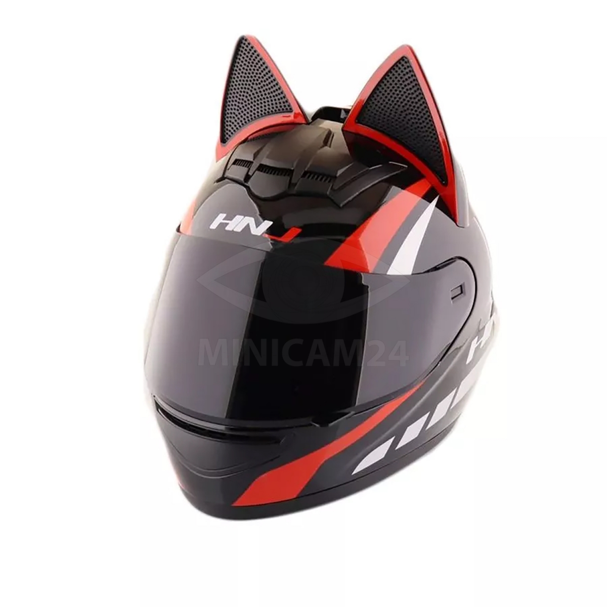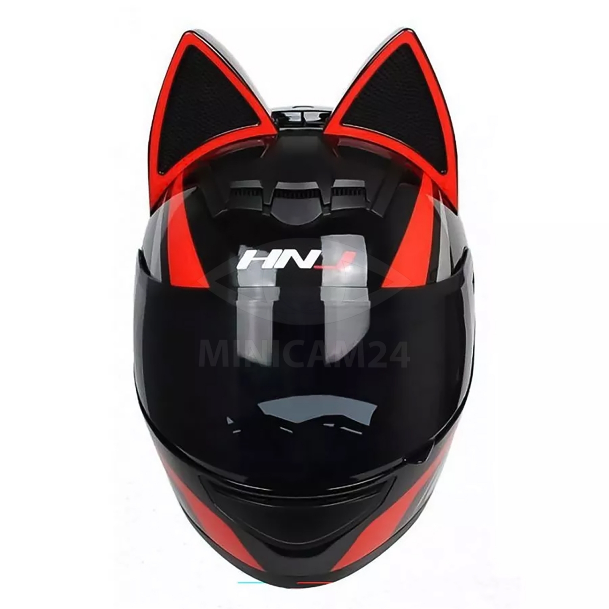 Мотошлем HNJ с кошачьими ушками красный, размер S